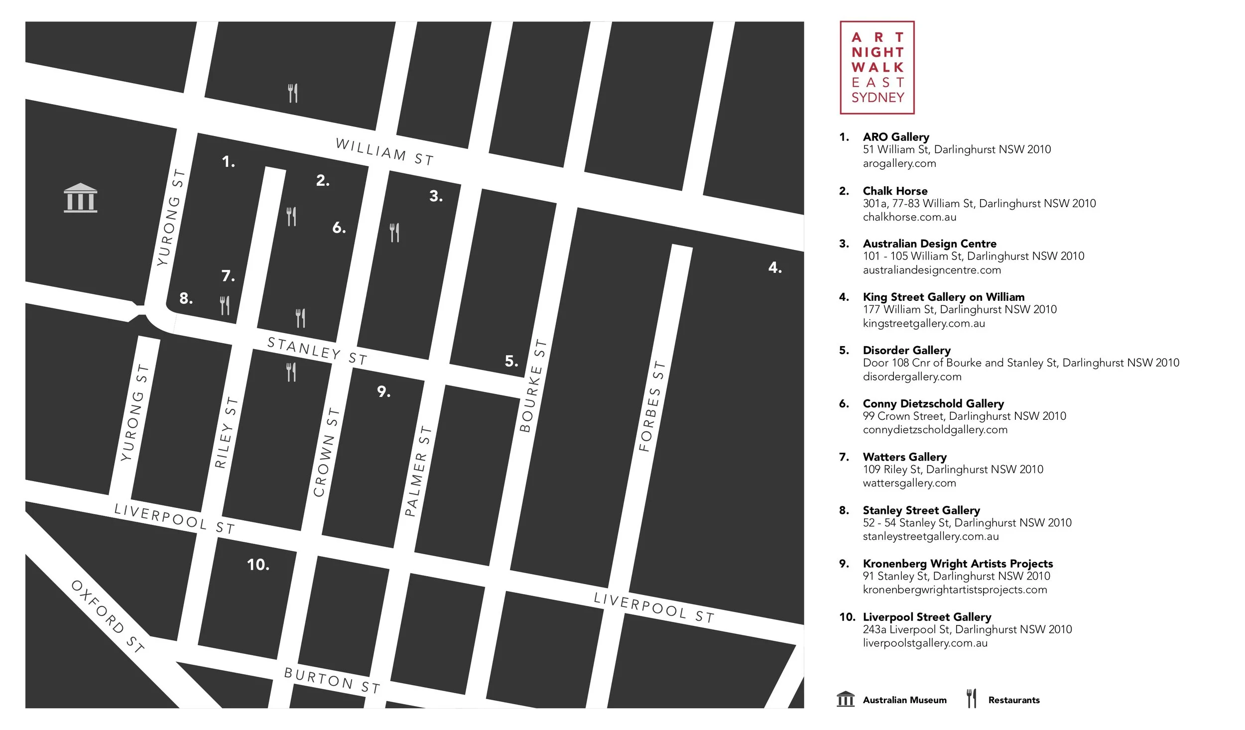 Jeremy's work will also be on display during the upcoming Art Night Walk East Sydney. Wednesday June 6th from 6-8pm, Disorder Gallery joins 9 other local galleries in keeping our doors open for visitors to warm up with a bit of art and glass of wine.